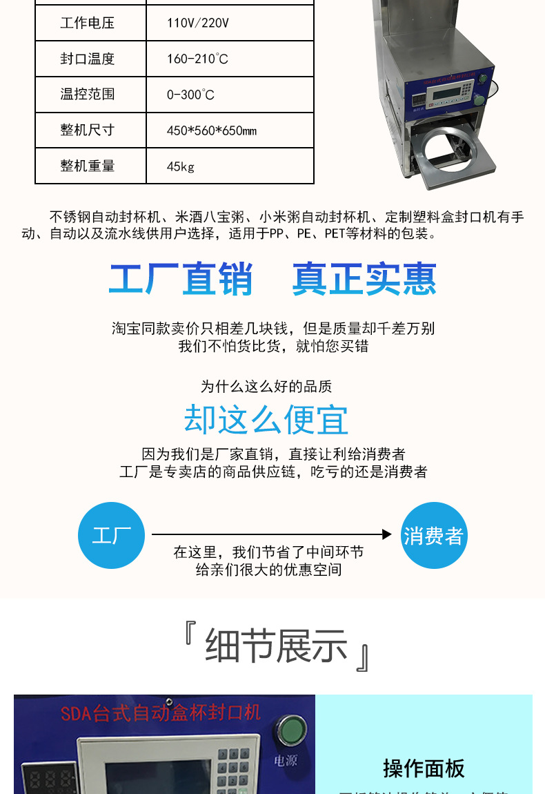 不銹鋼全自動片膜碗型封杯機